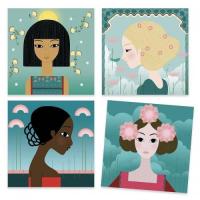 Met het knutselpakket Patterns and decorations van Djeco maak je 4 prachtige kunstwerken met doorzichtige stempels. Hierdoor blijft de achtergrond zichtbaar tijdens het stempelen en kun je de motieven en sieraden nauwkeuriger plaatsen.